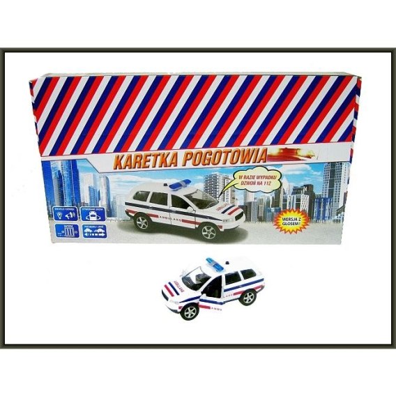 Ambulans pogotowie z napędem, z otwieranymi drzwiami, ze światłem i z dźwiękami Hipo (HKG096)
