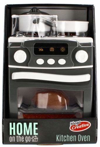 Zalety produktu: posiada efekty dźwiękowe oraz świetlne, po naciśnięciu odpowiedniego programu pieczenia zapala się lampka, w piekarniku, kuchenka posiada otwierane drzwiczki piekarnika oraz wysuwaną kratkę ze środka, posiada elektroniczny wyświetlacz gdzie obliczany jest czas pieczenia, kuchenka w kolorze szarym. Kuchnia MEGA CREATIVE to propozycja ciekawej i wciągającej zabawy dla dzieci, które chętnie naśladują zajęcia dorosłych i w bezpieczny sposób mogą bawić się w małych kucharzy. Ciekawy i nowoczesny design, a także ładna i żywa kolorystyka to tylko niektóre cechy tej kuchni Można tu znaleźć płytę z dwoma polami grzejnymi, kurki do sterowania kuchenką są ruchome. Zawartość zestawu: kuchenka, garnek z pokrywką, patelnia. Całość wykonana z plastiku. Wymiary/waga/baterie: wymiary produktu dł. x wys. x gł. cm : 18x23x14, wymiar opakowania dł. x wys. x gł. cm : 19x29x15, waga produktu bez opakowania kg : 0,61 kg, waga produktu w opakowaniu kg : 0,87 kg, wymaga zasilania bateriami 3 x AA- nie załączono do zestawu. Zabawka przeznaczona dla dzieci w wieku: 3 . Pakowana w kartonik z okienkiem. W kartonie zbiorczym po 24 szt.