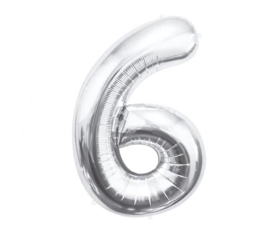 Balon foliowy Cyfra 6, srebrna, 85 cm 85cal Godan (BC-HSR6)
