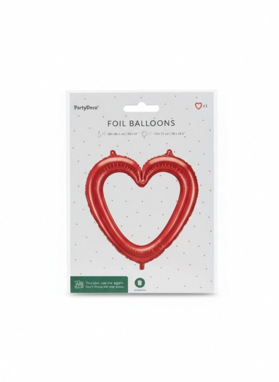 Balon foliowy Serce ramka, 86x83.5 cm, czerwony Partydeco (FB207P-007)
