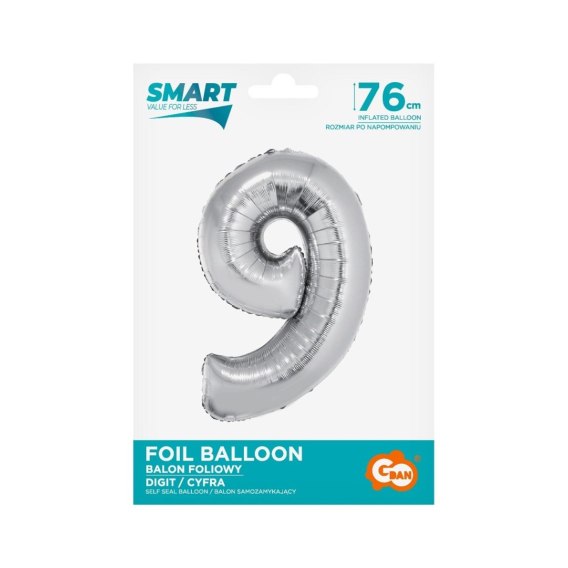Balon foliowy Smart cyfra 9 srebrna 76cm Godan (CH-SSR9)