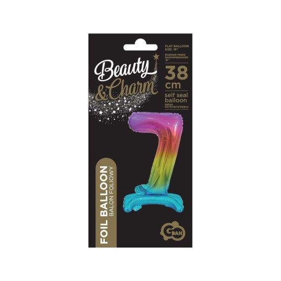 Balon foliowy cyfra 7 stojąca 38cm, tęczowa Godan (BC-ATT7)