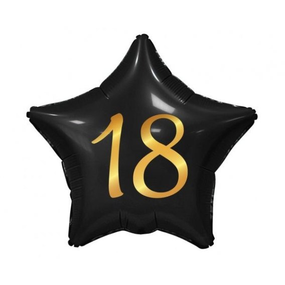 Balon foliowy gwiazda czarna, nadruk złoty, 18 urodziny 19cal Godan (FG-G18C)