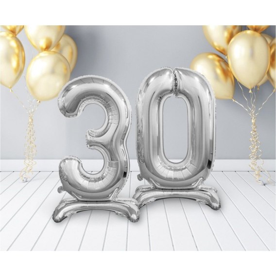 Balon gumowy Beauty&Charm cyfra stojąca srebrna Srebrny 30cal Godan (BC-ASS3)