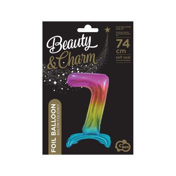 Balon gumowy Beauty&Charm cyfra stojąca tęczowa tęczowa 750mm 30cal Godan (BC-AST7)