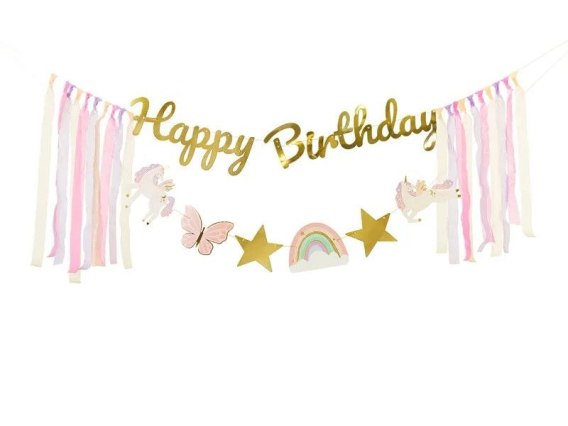 Baner Happy Birthday Jednorożec, 230x17.5 cm Partydeco (GRL120)