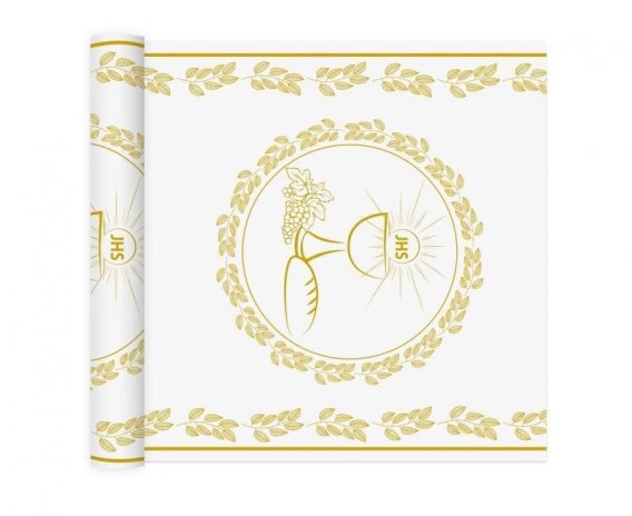 Bieżnik na stół Komunia Święta, biało-złoty, 33x200cm złoty Godan (BK-BKOM)