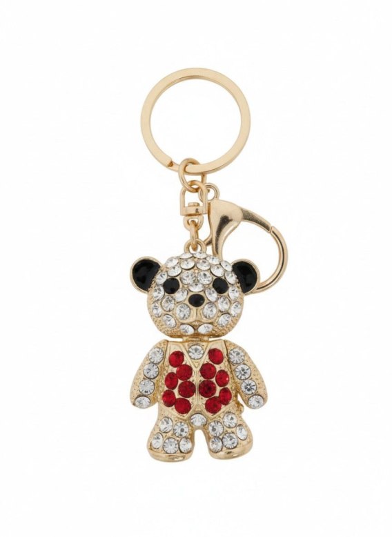 Brelok metalowy miś stojący z cyrkoniami pakowany po 1 szt.
