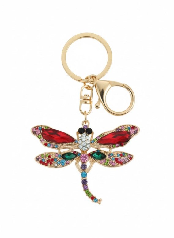 Brelok metalowy ważka z cyrkoniami, mix kolorów (TT1172)