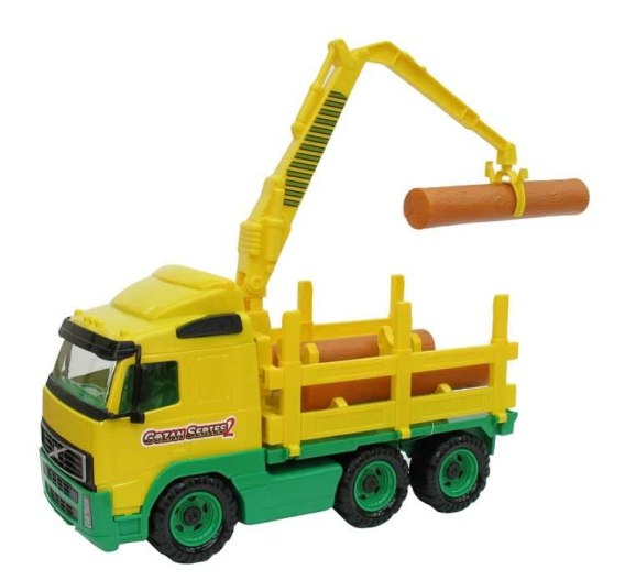 Samochód do przewozu dłużyc VOLVO to duża ciężarówka wyposażony w szerokie koła połączone metalowymi osiami. Ich struktura nie jest gładka, co ułatwia jazdę po nierównych powierzchniach.. Na naczepie znajduje się miejsce do przewozu kłód drewna, które to dołączono do zestawu. Na pojeździe umieszczono specjalny, ruchomy dźwig zakończony chwytakiem, który umożliwia transportowanie dłużyc z samochodu i na samochód. Kabina kierowcy jest oszklona. Użyto w tym celu grubego, przezroczystego plastiku.