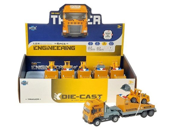 Ciężarówka z lawetą i koparką, metalowe, 30x10,5x7cm, światło, dźwięk Adar (618220)