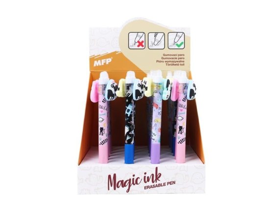 Długopis z gumką i cienką końcówką o grubości 0,5 mm. Daje możliwość łatwego usuwania napisanego tekstu, dzięki specjalnemu atramentowi, który można wymazać za pomocą gumki na końcu długopisu. Idealny do pisania notatek, zadań lub zapisów w dziennikach i planerach. Znajdzie zastosowanie przede wszystkim w szkole lub biurze, dzięki możliwości łatwego poprawiania błędów bez potrzeby używania korektora.