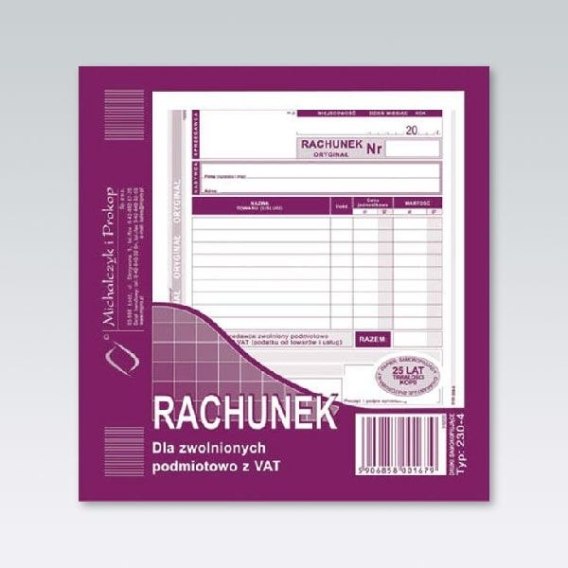 Druk offsetowy Rachunek dla zwolnionych podmiotowo z VAT 2/3 A5 80k. Michalczyk i Prokop (230-4)