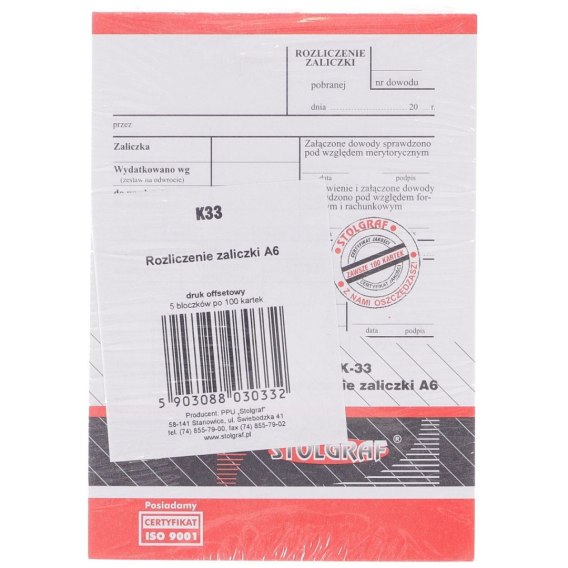 Druk offsetowy rozliczenie zaliczki A6 A6 100k. Stolgraf (K33)