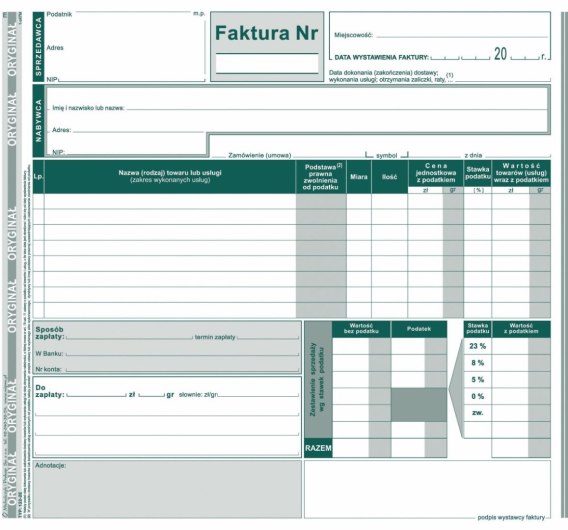 Faktura wzór uproszczony dla prowadzących sprzedaż w cenach brutto