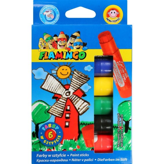 Farby plakatowe wykręcane, w sztyfcie kolor: mix 6 kolor. Flamingo (FS6R)