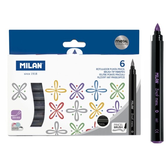 Flamaster Brush Metalic pędzelkowe 6 kol. Milan (0612606MET)