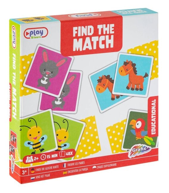 Znajdź pary Informacje produktowe: - W zestawie znajduje się 48x kart - Karty posiadają ilustracje zwierzątek - W grze chodzi o znalezienie 2 takich samych kart - Wygrywa osoba, która znajdzie najwięcej - Produkt rozwija pamięć oraz spostrzegawczość - Gra przeznaczona jest dla dzieci powyżej 3 roku życia
