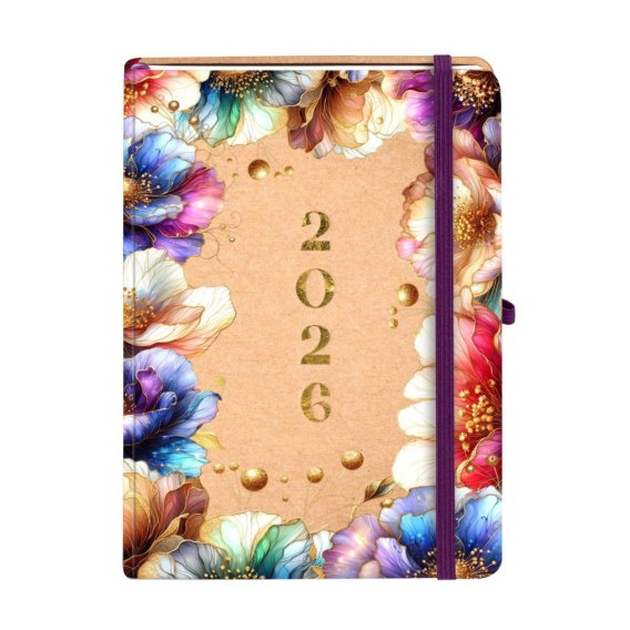 Kalendarz książkowy (terminarz) 2026 KRAFT TNS A5 Antra (KWIATY)