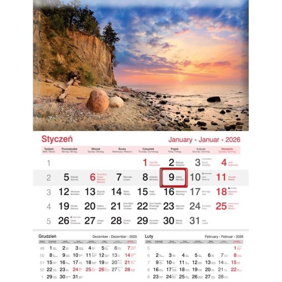 Kalendarz ścienny JEDNODZIELNY 2025 PLAŻA A4 Lucrum (KJ02)