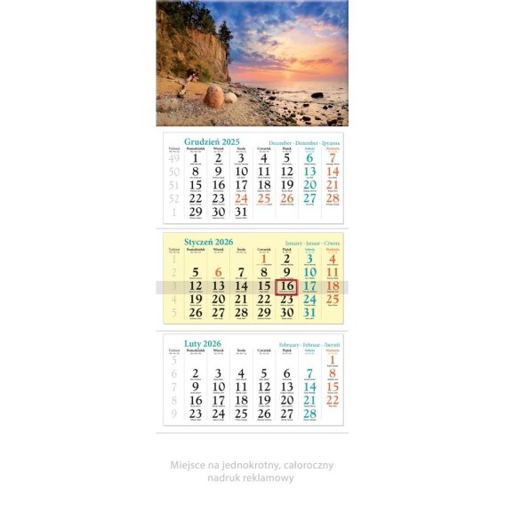 Kalendarz ścienny trójdzielny 320mm x 860mm Lucrum (KT02)
