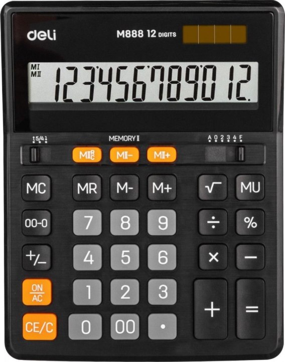 Kalkulator na biurko PODWÓJNA PAMIĘĆ 12 pozycyjny CZARNY Deli (EM888)