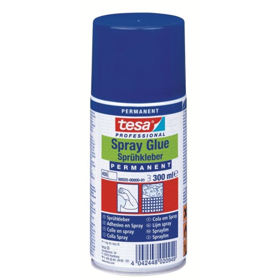 Tesa® Spray Glue PERMANENT 60020 to klej w sprayu wszechstronnego zastosowania, przeznaczony do trwałego łączenia materiałów takich jak: papier, karton, filc, tkanina, folia, drewno, skóra, polistyren i wiele rodzajów tworzyw sztucznych. Idealny do starannego, czystego, oszczędnego, niezawodnego i szybkiego łączenia dużych powierzchni. Nadaje się do materiałów o niskim do średnim ciężarze oraz o lekko nierównych powierzchniach. Charakteryzuje się precyzyjnym i równomiernym rozpylaniem kleju, szybkim schnięciem oraz odpornością na wilgoć, naprężenia mechaniczne i termiczne. Nadaje się także do łączenia materiałów typu styropian. Produkt nie zawiera silikonu ani rozpuszczalników chlorowanych. Idealny do tworzenia wzorników, szablonów, oznaczania palet, mocowania okablowań i etykiet, montażu regałów ekspozycyjnych, trwałego mocowania plakatów i szablonów, oraz do wielu innych profesjonalnych zastosowań w przemyśle i rzemiośle.