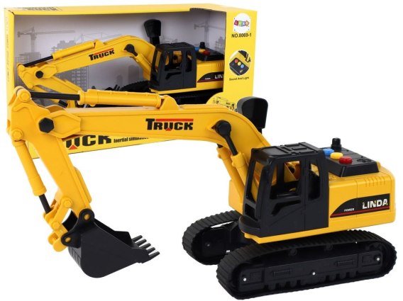Koparka Z Łyżką Żółta Gąsienice Światła Dźwięk