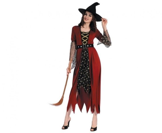 Kostium Zestaw dla dorosłych Czerwona Czarownica (sukienka, kapelusz, pasek ), rozm. M Godan (SL-CZCM)