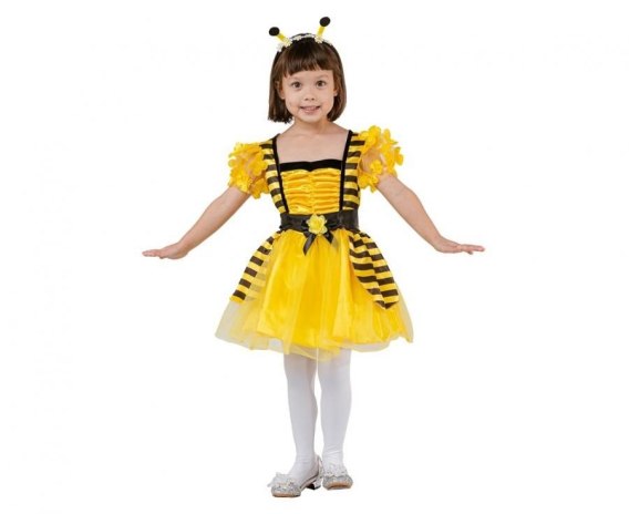STRÓJ PSZCZÓŁKI DLA DZIECI W skład stroju wchodzi: sukienka, opaska, pasek Rozmiar: 92/104 cm Kolor: wielokolorowy Materiał: 100% poliester Producent: Godan