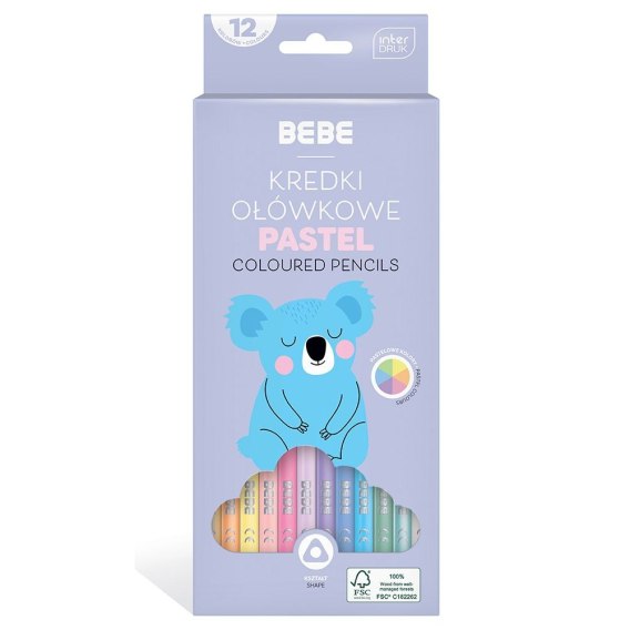 Kredki ołówkowe BB KIDS 12 kol trójkątne pastelowe 5902277329783 12 kol. Bebe (FSC100%)