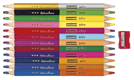 Kredki ołówkowe Flamingo dwustronne 24 kolory sześciokątne z temperówką