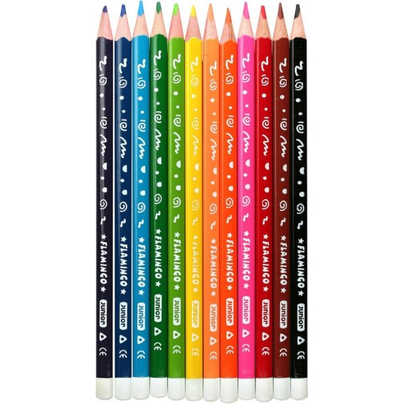 Kredki ołówkowe Junior Flamingo 12 kolorów trójkątne