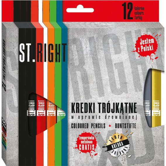 Kredki ołówkowe St.right trójkątne 12k + temperówka 12 kol. St.Majewski (5903235633294)
