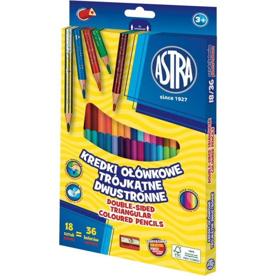 Kredki ołówkowe dwustronne trójkątne 18 kol. Astra