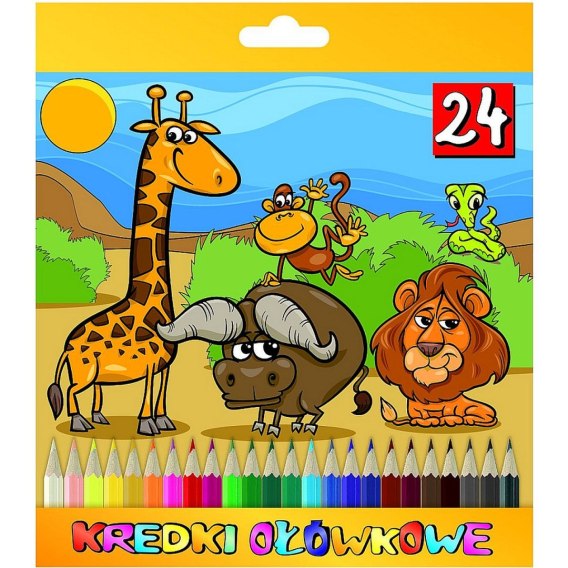 Sześciokątne, w drewnianej, lakierowanej oprawie. Ergonomiczny kształt kredek doskonale pasuje do dziecięcych dłoni. W kartonowym, kolorowym pudełku z motywami zwierzątek. W zestawie 24 kolory kredek. Długość kredek: 17.5 cm. Średnica kredek: 7 mm.