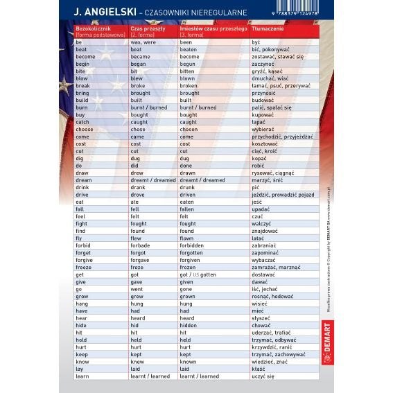 Książeczka edukacyjna ściągawka Język angielski - czasowniki nieregularne Demart