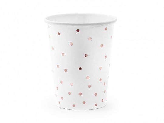 Kubek jednorazowy biały w kropki (1 op. / 6 szt.) papier 260ml Partydeco (KPP53-008-EU1)