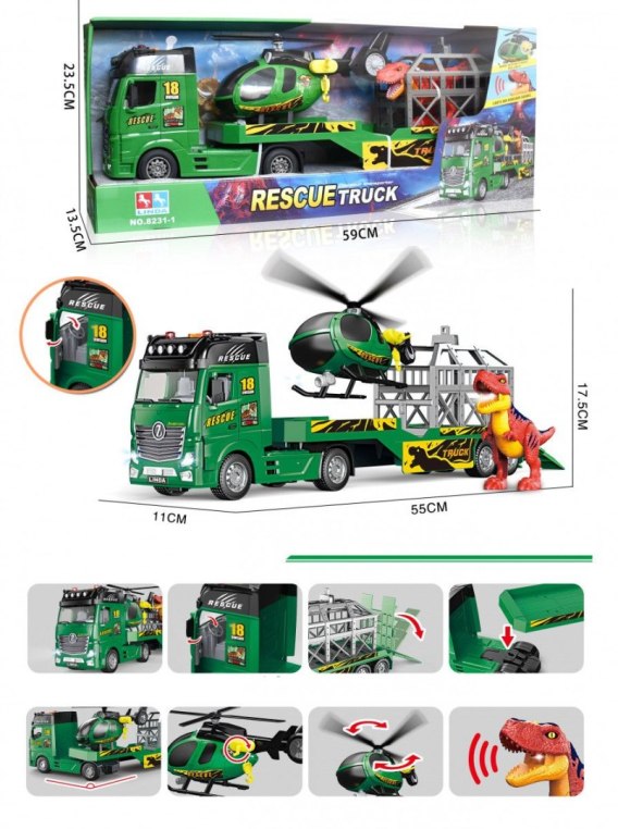 Laweta z helikopterem i dinozaurem Lean (23119)