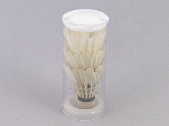 Zestaw 3 lotek piórkowych do badmintona, białe, tuba 15x6,5cm