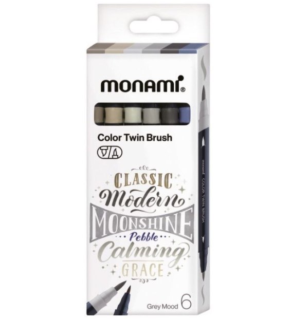 Marker specjalistyczny Grey dwustronny wodny z pędzelkami wkład mix pędzelek końcówka Monami (170-2781)