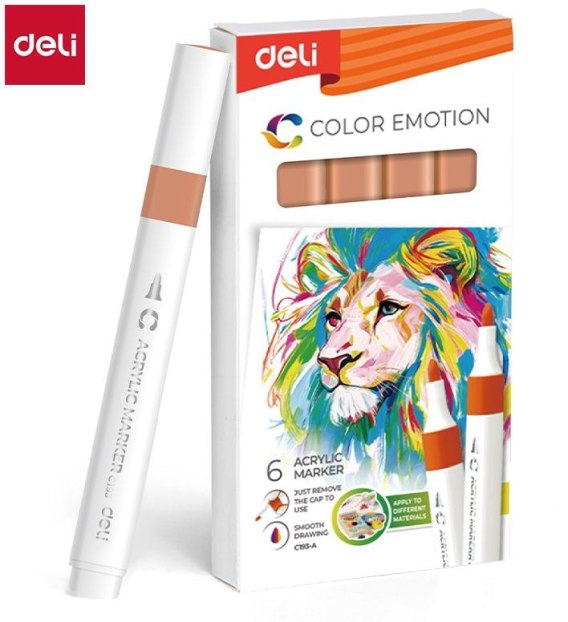 Dodaj wyrazisty akcent kolorystyczny z brązowo jasnym markerem akrylowym DELI (opakowanie 6 szt., . Te markery zapewniają żywy, kryjący jasnobrązowym tusz, który płynnie rozprowadza się na papierze, drewnie, metalu, szkle i innych materiałach. Dzięki trwałym końcówkom i równomiernemu przepływowi tuszu idealnie nadają się do szczegółowych prac artystycznych, etykietowania i projektów kreatywnych. Cechy: • Opakowanie 6 żółtych markerów akrylowych • zapewnia równomierny, jasnobrązowy tusz • Kryjący, intensywny tusz odpowiedni do wielu powierzchni • Łatwa aplikacja dzięki trwałym końcówkom markera • Idealne do prac artystycznych, rękodzielniczych i etykietowania