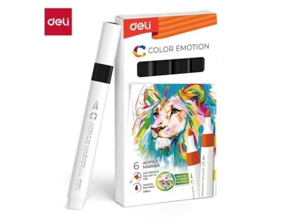 Dodaj wyrazisty akcent kolorystyczny z czarnym markerem akrylowym DELI (opakowanie 6 szt., . Te markery zapewniają żywy, kryjący czarny kolor który płynnie rozprowadza się na papierze, drewnie, metalu, szkle i innych materiałach. Dzięki trwałym końcówkom i równomiernemu przepływowi tuszu idealnie nadają się do szczegółowych prac artystycznych, etykietowania i projektów kreatywnych. Cechy: • Opakowanie 6 żółtych markerów akrylowych • zapewnia równomierny czarny tusz • Kryjący, intensywny tusz odpowiedni do wielu powierzchni • Łatwa aplikacja dzięki trwałym końcówkom markera • Idealne do prac artystycznych, rękodzielniczych i etykietowania