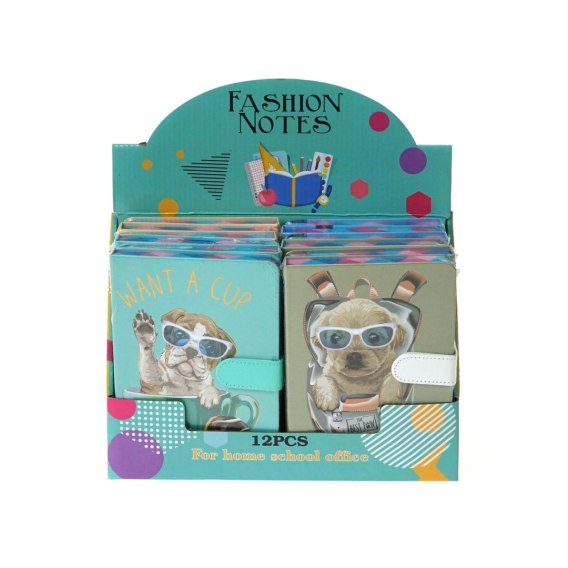 Notes z zapięciem magnetycznym 19x13x1,5cm, pieski, display 12szt; 28x19x12cm, Box