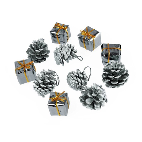 Ozdoba świąteczna prezenciki i szyszki 12szt. srebrne Arpex (BN6028SRE-7581)