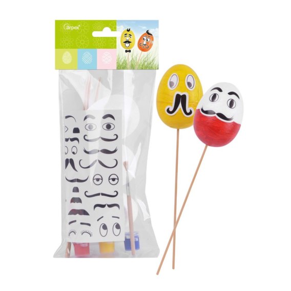 Ozdoba wielkanocna Zestaw dekoracji kreatywnych na piku 3 jajka, wąsiki i farbki Arpex (WN6096)
