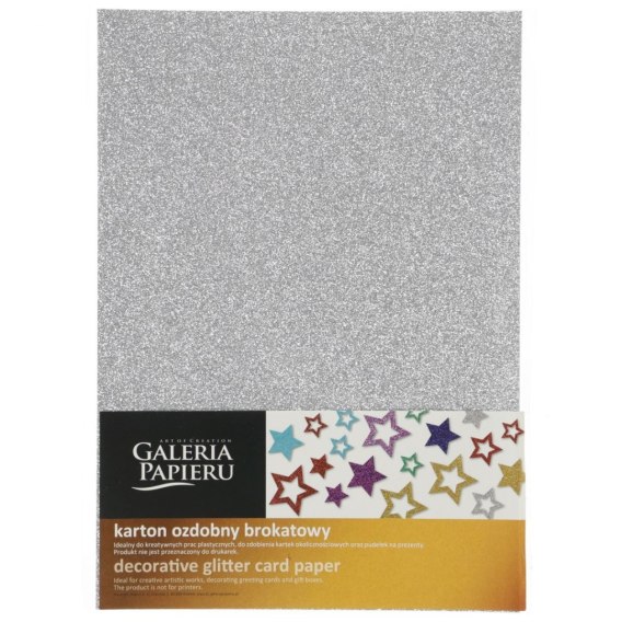 Papier ozdobny (wizytówkowy) brokatowy srebrny A4 srebrny 210g Galeria Papieru (208105)
