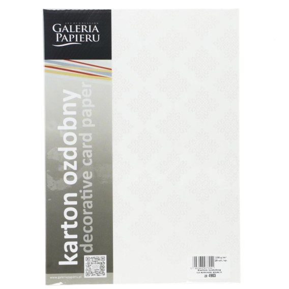 Papier ozdobny (wizytówkowy) glamour biały 230g 20 arkuszy A4 biały 230g Galeria Papieru (204903)