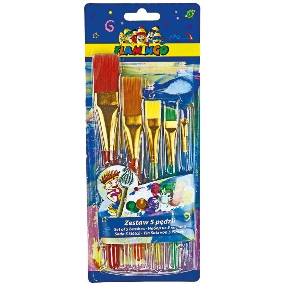Pędzel akrylowy uchwyt zestaw 5 szt. Flamingo (PS-04)