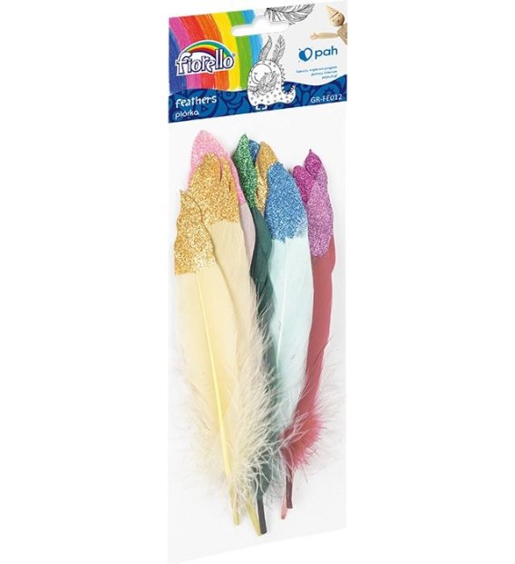 Piórka z brokatem kolorowe mix 10 szt Fiorello (170-2617)